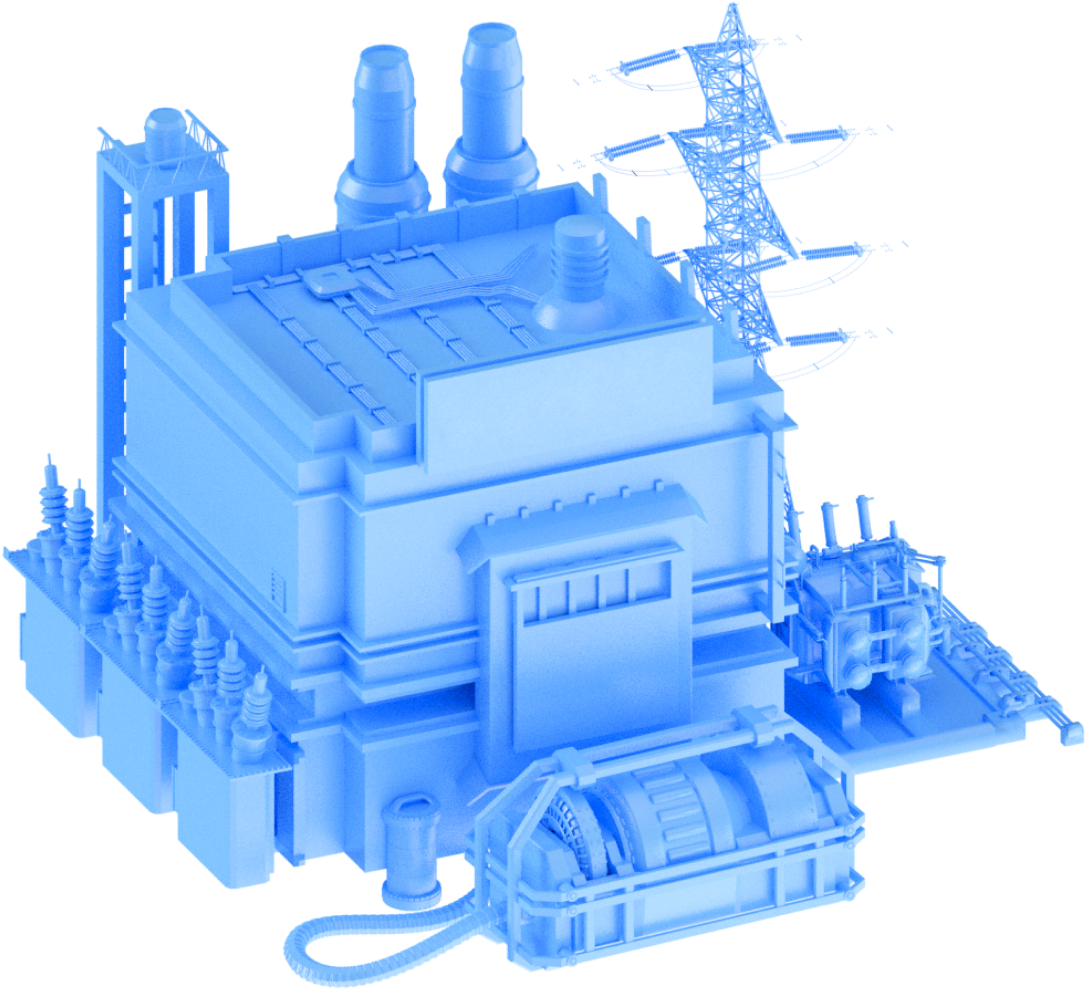 Электричество вырабатывается на ТЭЦ и ГЭС, а также ветрогенераторами. По ЛЭП электроэнергия передается до подстанций, которые питают города, заводы и транспорт. Все подстанции управляются из единого центра диспетчерского управления. Умные счетчики отправляют показания напрямую в энергетическую компанию.