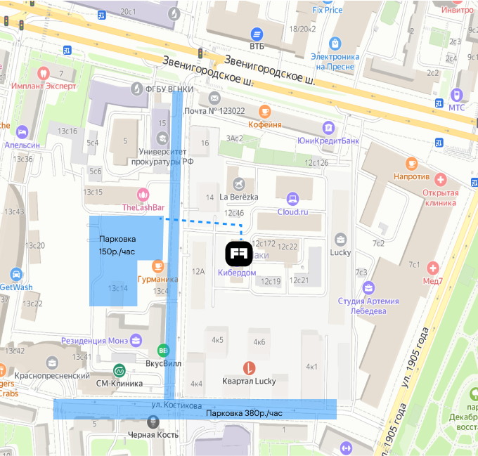 ул. 2-я Звенигородская, ул. Костикова (380 руб. в час)